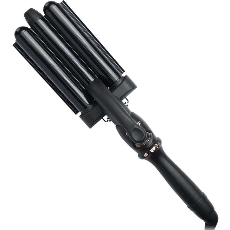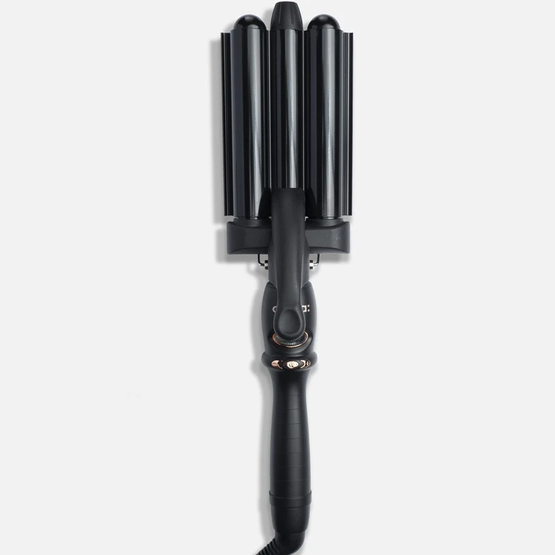 Denne styler er udviklet med 3 turmalinkeramiske cylindre, der med et optimalt buet design og en jævn varmefordeling, leverer perfekt formede og glansfulde bølger. Samtidig sørger infrarød teknologi for at bevare fugten i håret, mens negative ioner forsegler hårenes skællag, så dit hår efterlades med en glat og krusfri finish.