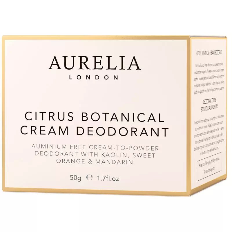 Aurelia Citrus Botanical Cream Deodorant er en fuldstændig fantastisk deodorant. Dette er en anderledes deodorant, da den fungerer som en creme-til-pudder deo. Det vil sige at man her får en deodorant i krukke, og når den påføres vil den forvandle sig til pudder. Det superfine pudder som blandt andet indeholder pilerod og kaolin, absorberer naturligt sved i løbef af dagen, og holder derved huden tør. Den er beriget med sheasmør, som fugter huden, mens indholdet af essentielle olier fra mandarin, grapefrugt, sød appelsin og rosmarin virker antibakterielt, samtidig med at det bidrager til den friske duft. Aurelia Citrus Botanical Cream Deodorant fjerner dårlig lugt og efterlader dig med en frisk og ren følelse.