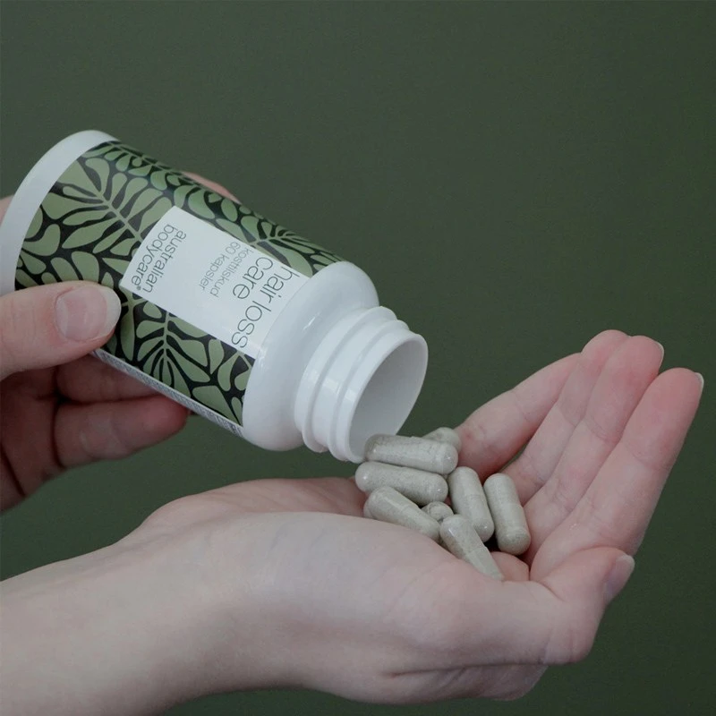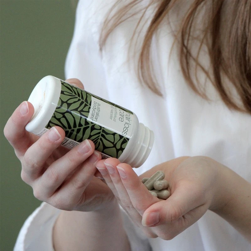 Australian Bodycare Hair Loss Care er et kosttilskud der har til formål at mindske hårtab. De indeholder blandt andet selen, biotin og zink som bidrager til vedligeholdelse af et normalt hår. Derudover er de med kobber der bidrager til en normal pigmentering af håret. Et godt supplement til Australian Bodycare Hair Care serien.