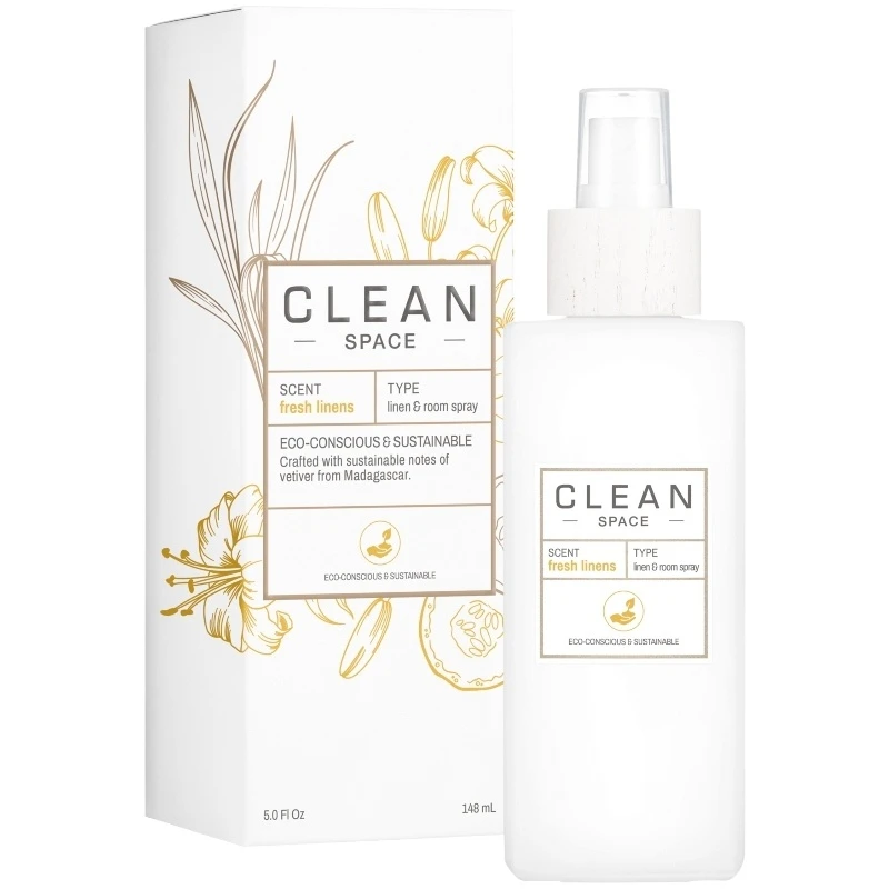 Clean Perfume Space Fresh Linens Linen & Room Spray er en skøn og særdeles opfriskende roomspray, der giver liv til enten dine rum eller dit tøj. Den energigivende duft af vetiver, vækker dine sanser på en behagelig måde. Med denne veganske spray, kan du selv vælge om det er dit sengetøj, din stue, dit soveværelse, eller et helt andet sted, som trænger til ny energi, og som du kun skal bruge et par pift til at få til at dufte som et helt nyt rum. Flakonen er en smuk og simpel glasflaske du uden tøven godt kan have stående fremme, så den altid er lige ved hånden når du kan bruge den.