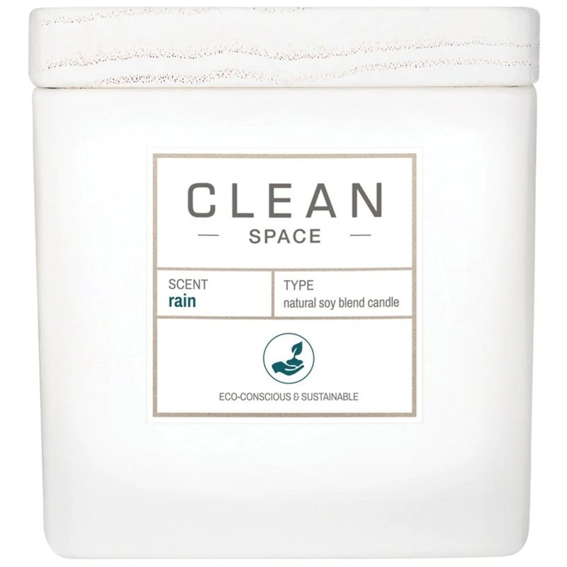 Clean Perfume Space Rain Candle er et super lækkert vegansk duftlys, der virker beroligende på sanserne. Lyset er lavet i soyavoks og har to bomuldsvæger, så lyset brænder jævnt. Derudover er den uden de giftstoffer der oftest er i paraffinlys, så du får et bedre indeklima, uden at glemme hyggen. Et rigt og behageligt håndlavet lys, der med sin fortryllende og rene duft, pryder hjemmet i helt op til 40 timer.