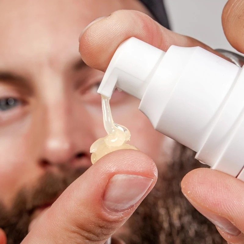 - Påfør et par pump fra roden af hårene til spidsen og lad det arbejde med dit skæg i løbet af dagen