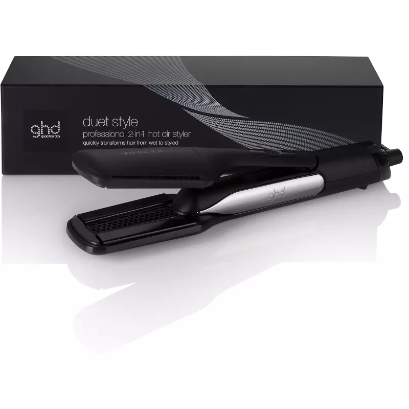 ghd Duet Styler Black er en banebrydende og helt unik 2-i-1 hot air styler, der giver dig muligheden for at tørre og style håret på samme tid uden at beskadige det.