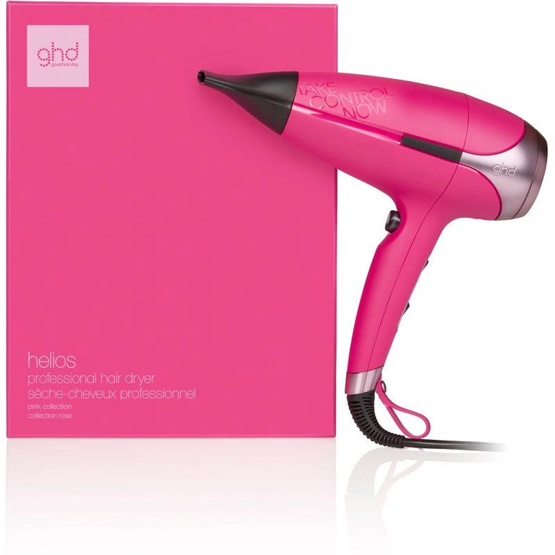 ghd Helios Hair Dryer – Pink er en elegant limited edition af den kraftfulde og fantastiske Helios Hair Dryer i en superflot og fængende okidépink. ghd har designet denne kollektion for at sætte fokus på brystkræft og understrege vigtigheden af, at man jævnligt undersøger sine bryster. Den smukke farve symboliserer ligeledes et vigtigt statement ”Take Control Now”, der giver dig en kærlig påmindelse om at undersøge dig selv hver eneste måned.