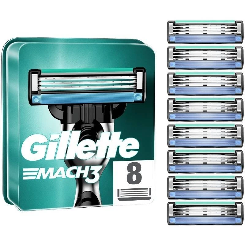 Gillette Mach3 Blades 8 Pieces er en pakke med 8 barberblade, som passer til Gillette Mach3 Base Manual Razor.