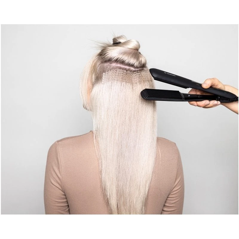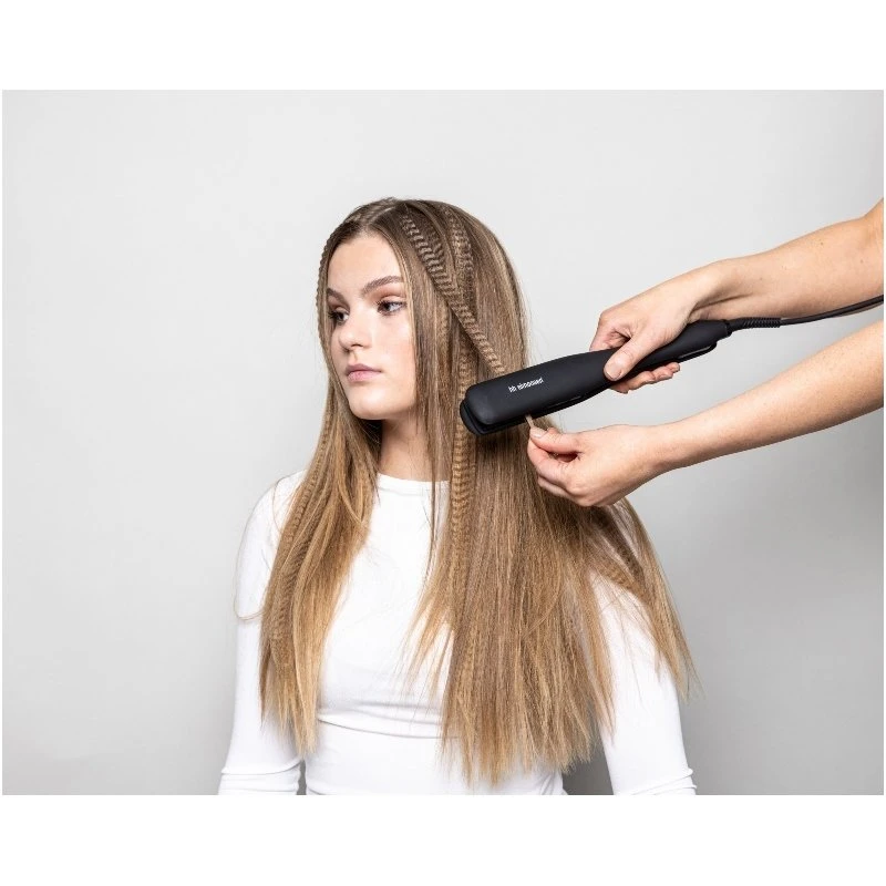 HH Simonsen ROD VS6 Crimping Iron er et ergonomisk crepejern af høj kvalitet. Med dette fantastiske jern kan man skabe maksimal fylde helt nede fra hovedbunden uden at man behøves at toupere eller fylde håret med produkter. Derudover kan man også crepe enkelte totter for at skabe mere kant til sit look. Varmepladerne er med keramisk teflon-coating, som sikrer at håret selv med lak i ikke hænder fast under stylingen. De fjedrer-ophængte plader sikrer at trykket på håret minimeres, hvilket nedsætter risikoen for skader.