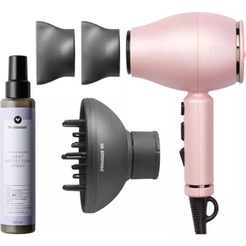 HH Simonsen XS Dryer Pretty Rose + Heat Protection Spray er et super lækkert sæt med som indeholder en feminin limited edition af det fantastiske og ekstraordinære HH Simonsen XS Dryer, som er en lille og let føntørrer, som er yderst effektiv.