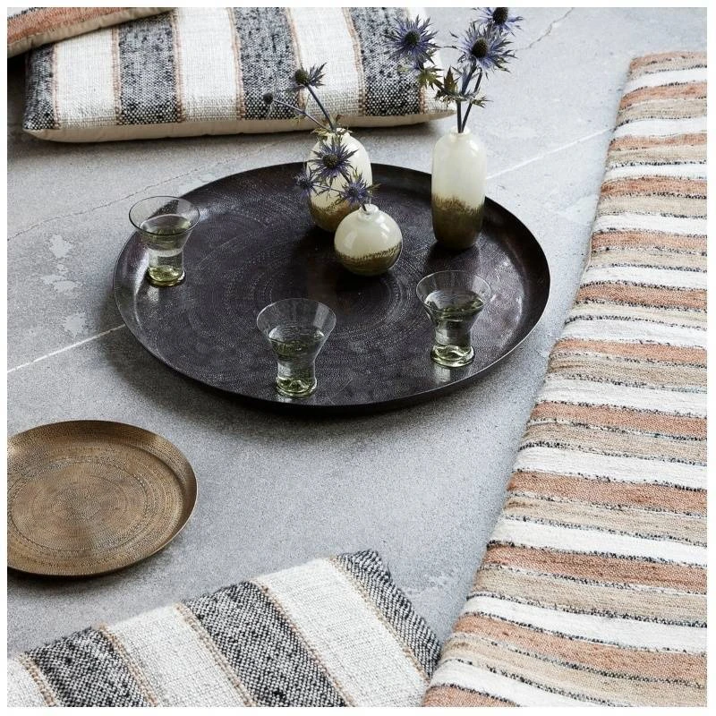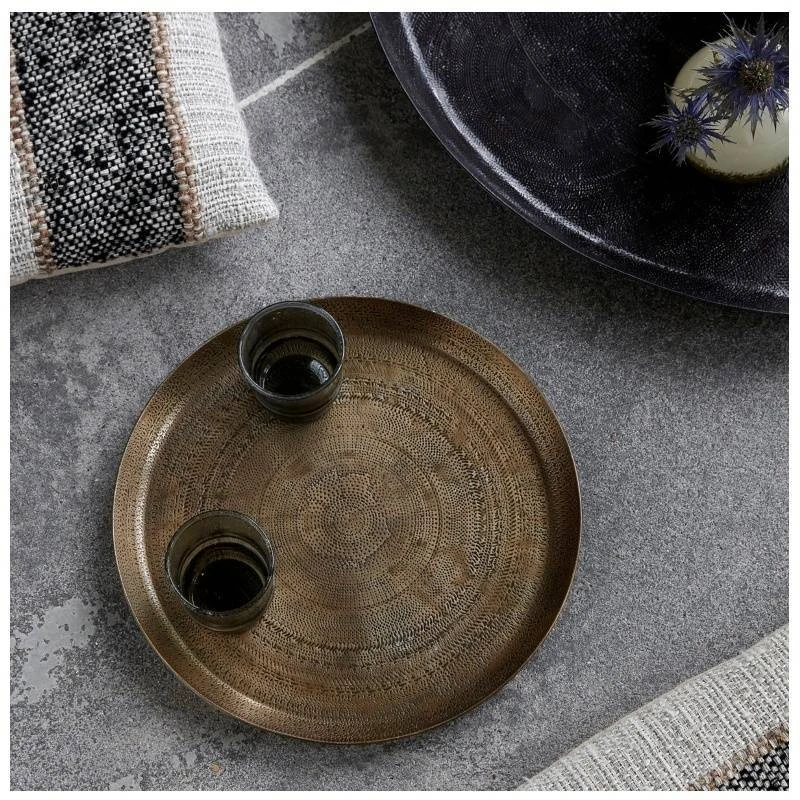 House Doctor Tray Jhansi Antique Brass Finish er et super smukt fad med messinglook, der uden tvivl vil pynte i ethvert hjem. Denne stålbakke kan dekoreres præcis som du ønsker det, uanset om det er på badeværelset med produkter, som en bakke til opbevaring, som et innovativt krydderifad i køkkenet, eller som et flot lysfad. Kun fantasien sætter grænser. Overfladen på denne bakke er med et kreativt og detaljeret mønster, der kan variere en smule fra bakke til bakke, så lige præcis dit fad er en smule unikt. Pryd dit hjem med denne 29 cm bakke, der løfter din indretning, og gør det muligt at skabe et personligt hjem.