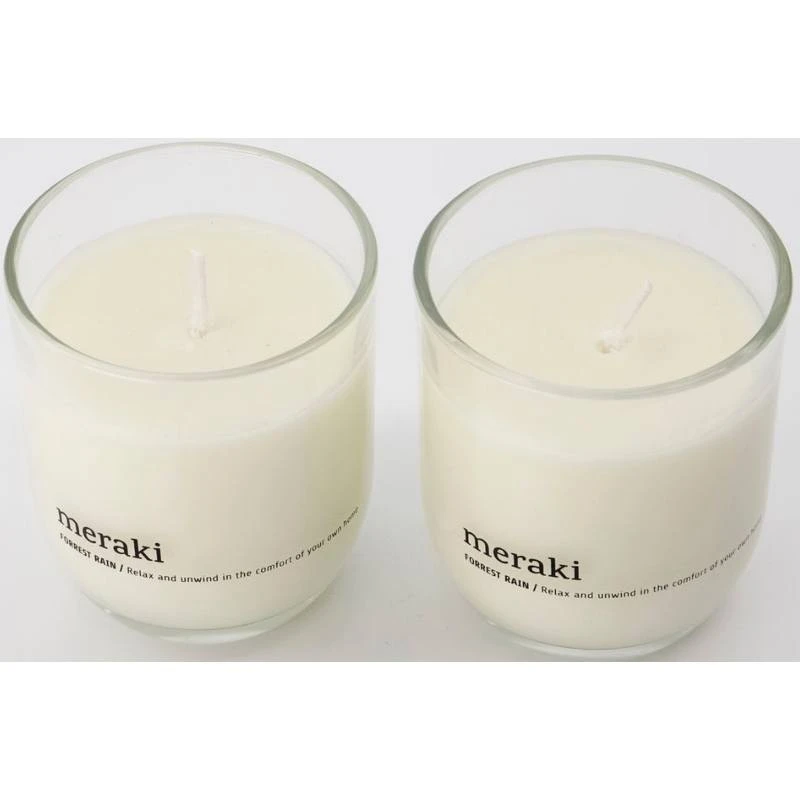 Meraki Scented Candle Kit – Forest Rain er et super fint sæt med 2 små duftlys, som kommer i et stilrent og elegant design i søde små glasholdere. Disse lys kan bruges i alle rum, som f.eks. entréen, badeværelset, soveværelset eller stuen, hvor du ønsker at understrege følelsen af hygge og velvære.