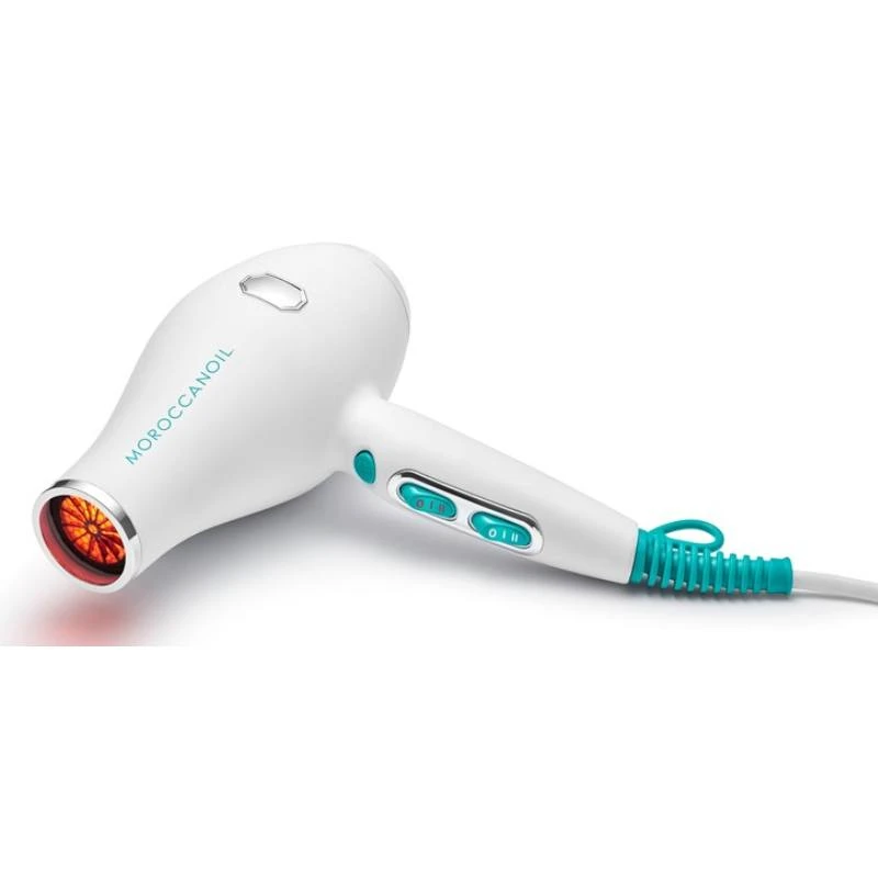 Moroccanoil Smart Styling Infared Hair Dryer er en utrolig effektiv føntørrer, som samtidig er mere skånsom mod håret. Den er nemlig skabt med infrarødt lys, som reducerer varmeskader, og bevarer fugten i håret ved at varme håret op indefra og ud. Den bruger kun 1300W, men producerer stadig samme luftgennemstrømning og varme som andre traditionelle føntørrer, og er derudover 40% mere energibesparende. Denne føntørrer er med patenteret keramisk honeycomb teknologi, hvilket giver en koncentreret luft, og derved opnår man en hurtigt og effektiv føntørring af ens hår. Føntørren vejer kun 450 gram, og der medfølger både et føn-næb og diffuser.