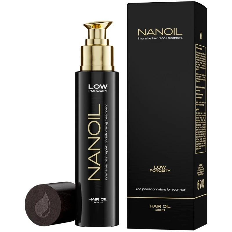 Nanoil Low Porosity Hair Oil er en næringsrig og genopbyggende hårolie, der passer perfekt til dig, der har tungt, stift og tykt hår, som ønsker at give dit hår volumen og liv.