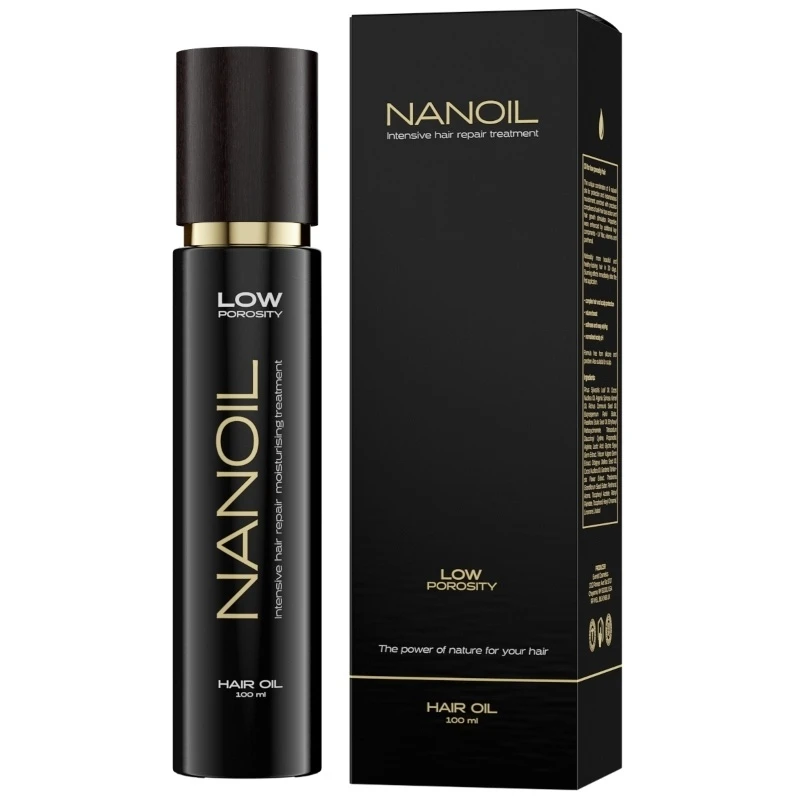 Nanoil Low Porosity Hair Oil består hovedsageligt af naturlige vegetabilske olier, som gør mirakler for dit hår.