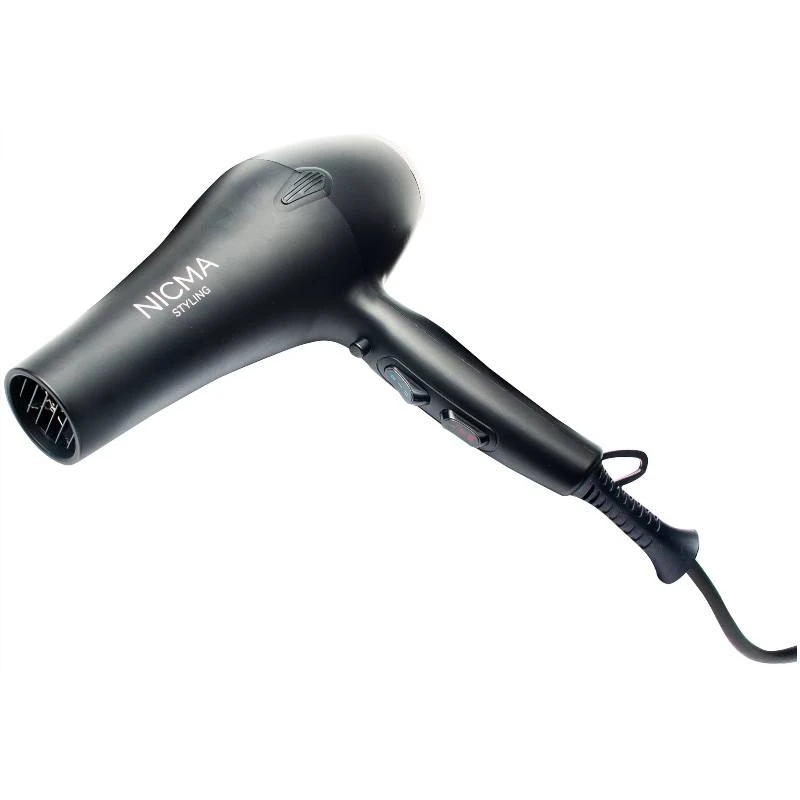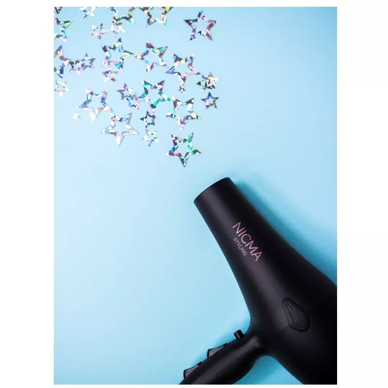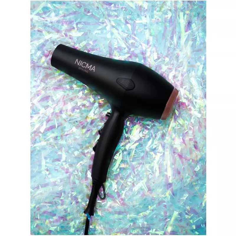 NICMA Styling – The Hair Dryer er en effektiv og utrolig kraftfuld føntørrer. Den er er skabt i et sort design med rose gold detaljer, hvilket gør at den egner sig perfekt til dig, som ikke blot ønsker sig sine stylingredskaber i høj kvalitet, men også med et godt udseende. Den kan indstilles i 3 forskellige varme -og blæsestyrker, og har derudover en knap til kold luft, så man kan indstille den præcis efter ens behov. Denne føntørrer er skabt med en AC-motor med 2100-2400 W, som gør at den er utroligt kraftfuld, og giver en kortere tørretid.