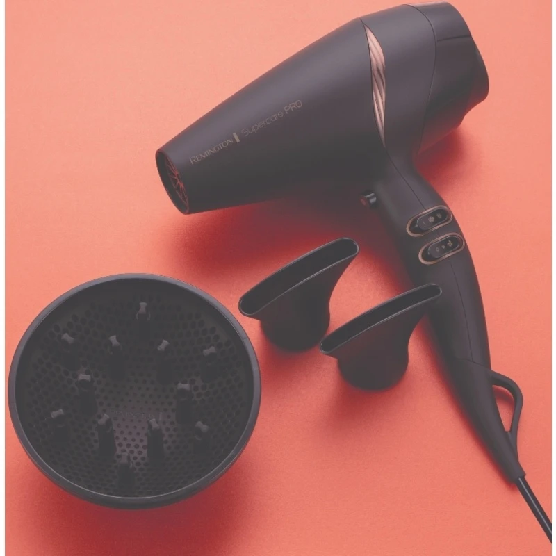 Remington Supercare PRO 2200 AC Hairdryer er den perfekte føntørre til dig, der ønsker at pleje dit hår samtidig med at du opnår resultater i salonkvalitet.